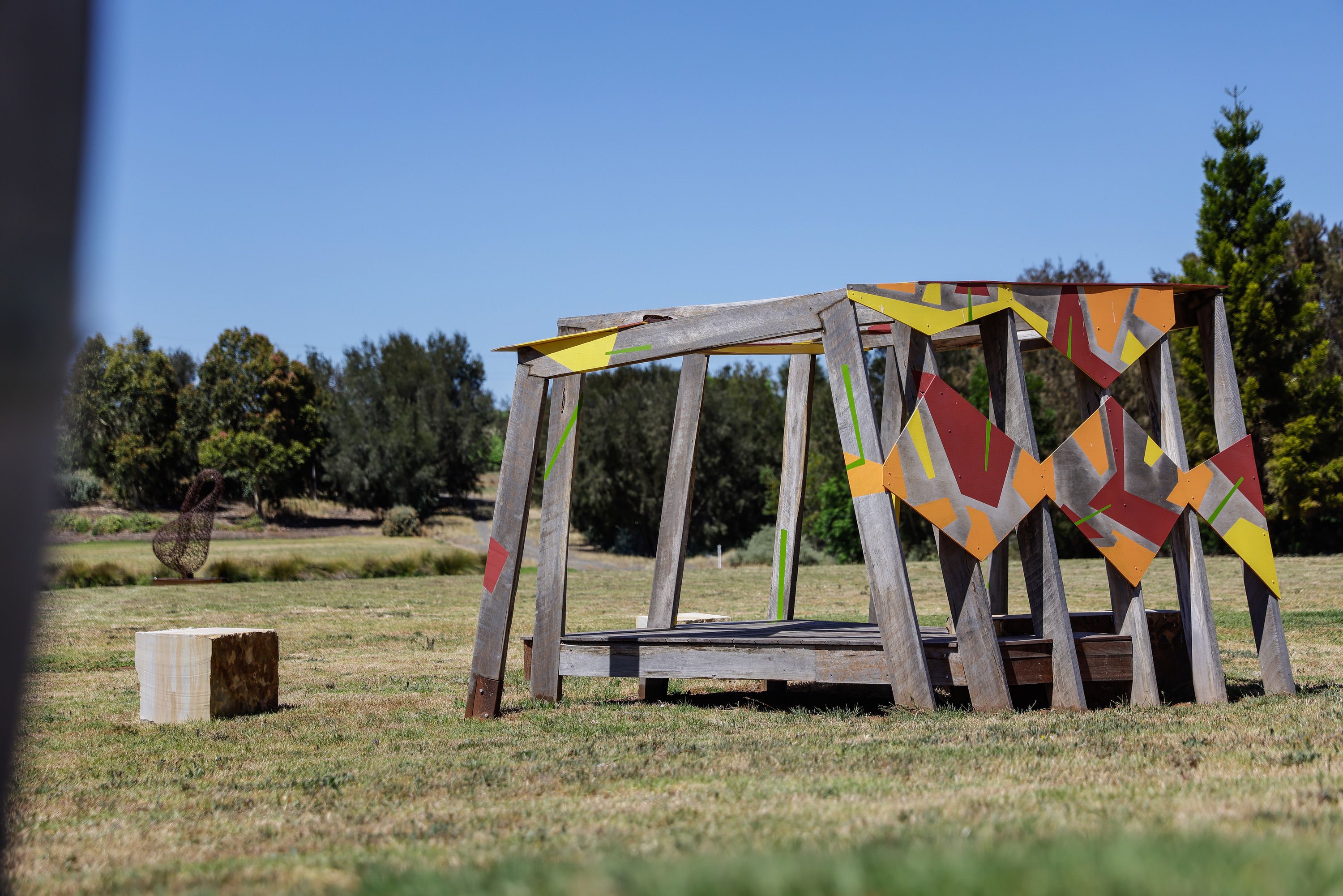 MATERIALS: Salvaged hardwood timbers, painted ply, limestone and sandstone (built on site at Taylors winery).